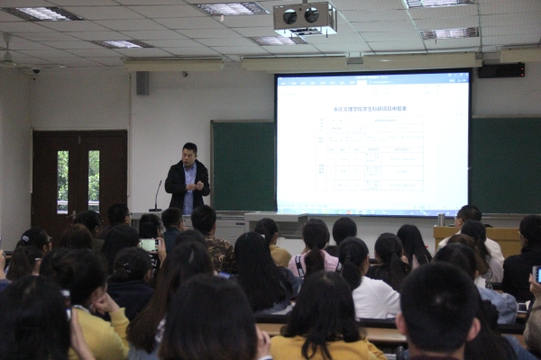 黄贤忠博士就如何撰写学术论文类申报书提出了自己的建议。他首先指出科研选题要符合当下流行趋势,要关注社会生活实践,要具有可操作性。然后以往年优秀申报书《战国服饰色彩研究》为例,介绍了撰写申报书的流程,分别为同学们讲解了负责人介绍、项目研究价值与意义、研究现状、研究内容、研究方法、进程、成果等板块的具体填写方法,他特别提到导师的作用,最后他鼓励同学们以兴趣点为导向,积极思考,大胆设想,具体落实,勇于踏入学术的世界。