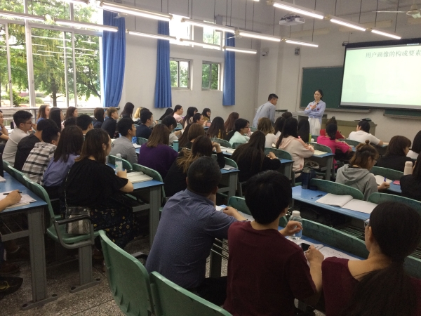 5月9日上午,澳门网投传媒系举行了本学期第二次公开课活动。第三节课期间,教学副院长李芹燕和传媒系主任邱飞以及传媒系部分教师,在知津楼A101教室观摩了由倪玮蔓老师为2016级广电编导2班学生主讲的《媒介经营管理实务》课。