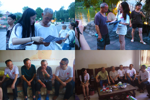 牢记使命,坚定信念。服务团在璧山的企业、社区等地进行了“十九大精神”的宣讲活动。宣讲以“号召青年人进取拼搏,努力实现中华民族的伟大复兴”为主题,详细向企业职工、社区居民讲解了十九大报告中的重要内容,全面展示了报告中的新理念、新观点、新思想。志愿者们也以发放“十九大精神”宣传单的形式,与群众进行互动交流,引起了当地居民和企业职工的热烈反响。服务团还看望了壁泉街道华龙社区老党员刘吉富、李世碧两位老党员,为他们送去了牛奶、菜油,向他们致以真挚问候。老党员们也分享了自己的入党经历,就党性、使命、信念等方面与志愿者做了深入交流,寄语志愿者要坚定跟党走的理想信念,要坚持为人民服务的原则,要坚决执行党的重要决定。