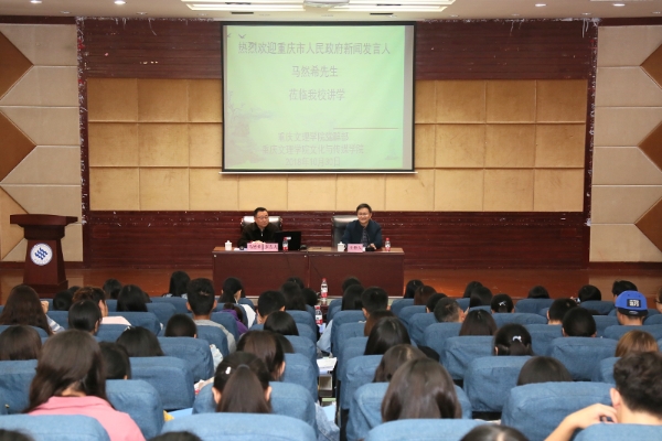10月30日下午,应学校邀请,重庆市人民政府新闻办副主任、新闻发言人马然希先生莅临博文馆101举办了“信还是不信——我的新闻发布从业体验”的学术报告。党群部史甲庆副部长、澳门网投2017级、2018级广电、广编专业师生,《星湖》写作社社员等两百余人到场聆听了报告。报告会由澳门网投院长李天福主持。