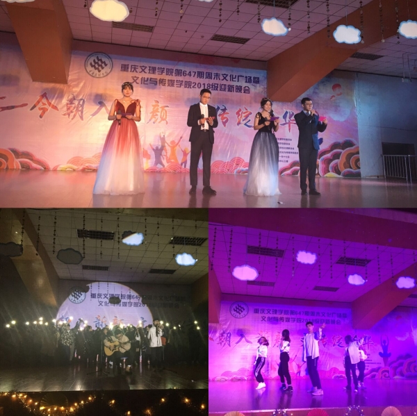 余秋携冬意,周广溢青春1117日晚7点,647周末文化广场”暨文化与传媒学院2018级迎新晚会在活动中心三楼成功举行,本次活动由校团委、学生联合会、学生社团联合会主办,文化与传媒学院承办。学院院长李天福党总支书记、关工委主任白成良关工委委员蒋永平,各级辅导员,兄弟学院学生干部作为嘉宾出席了本次活动。澳门网投1718级全体同学到场观看。