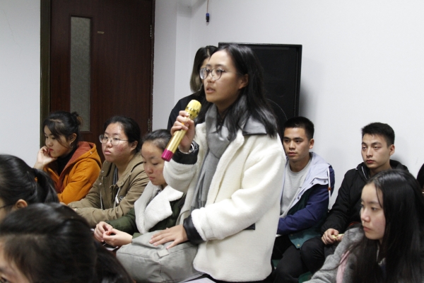 会上,李天福以幽默风趣的话语向同学们表达了真挚的祝愿,并对18级新生目前积极的学习面貌、热情的工作状态表示了肯定,让同学们感受到了学院的关怀。李天福叮嘱同学们多去图书馆,在书籍中提升内涵、寻求发展、提升价值、确立目标,引导同学们明白大学学习的意义与乐趣。白成良就创业与就业问题作出了详细的回答,鼓励大家积极创新、勇于创业,希望同学们在创新创业中提升自身综合素养。李芹燕则在同学们如何选择社团、如何平衡学习与工作上作出了回复,教导同学们要有效利用时间去丰富自己,为将来的职业生涯奠定坚实基础。余建荣则为大家解答了考研与英语四级的问题。师言如春风化雨,温言解惑。期间,师生在学习、就业和生活等方面以线上提问和线下交流的形式进行互动,共度了一段轻松温馨的时光。