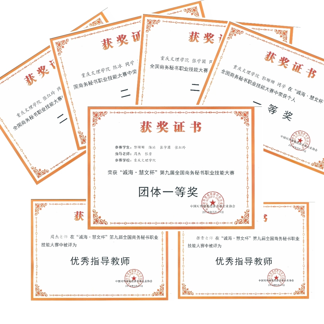 经过两天的角逐,我院代表队凭借着扎实的理论功底、精湛的实践技能荣获本次大赛的“团体一等奖”;其中,郭珊珊同学荣获“个人综合一等奖”,陈冰、张学圆、张红玲三位团队成员均获“个人综合二等奖”;周杰、张雪两位老师荣获“优秀指导教师”称号,充分展现出了我院汉语言(文秘)专业学生优秀的专业素养,以及我院在该专业人才培养方面的能力水平。