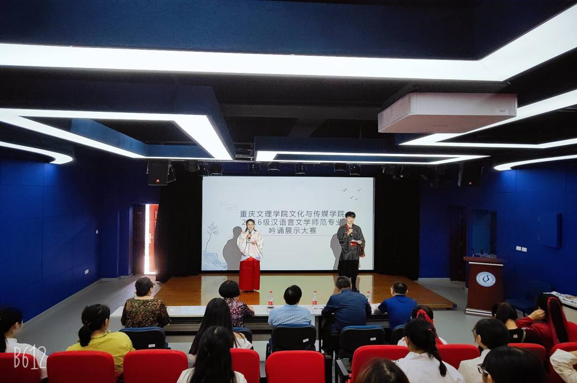 201965日下午4:20,在格致楼D502举行了主题为吟经典,诵风采的吟诵展示大赛,文化与传媒学院院长李天福、副院长李芹燕、中文系主任黄贤忠等5名教师以及2016级汉文专业学生参加了此次活动。