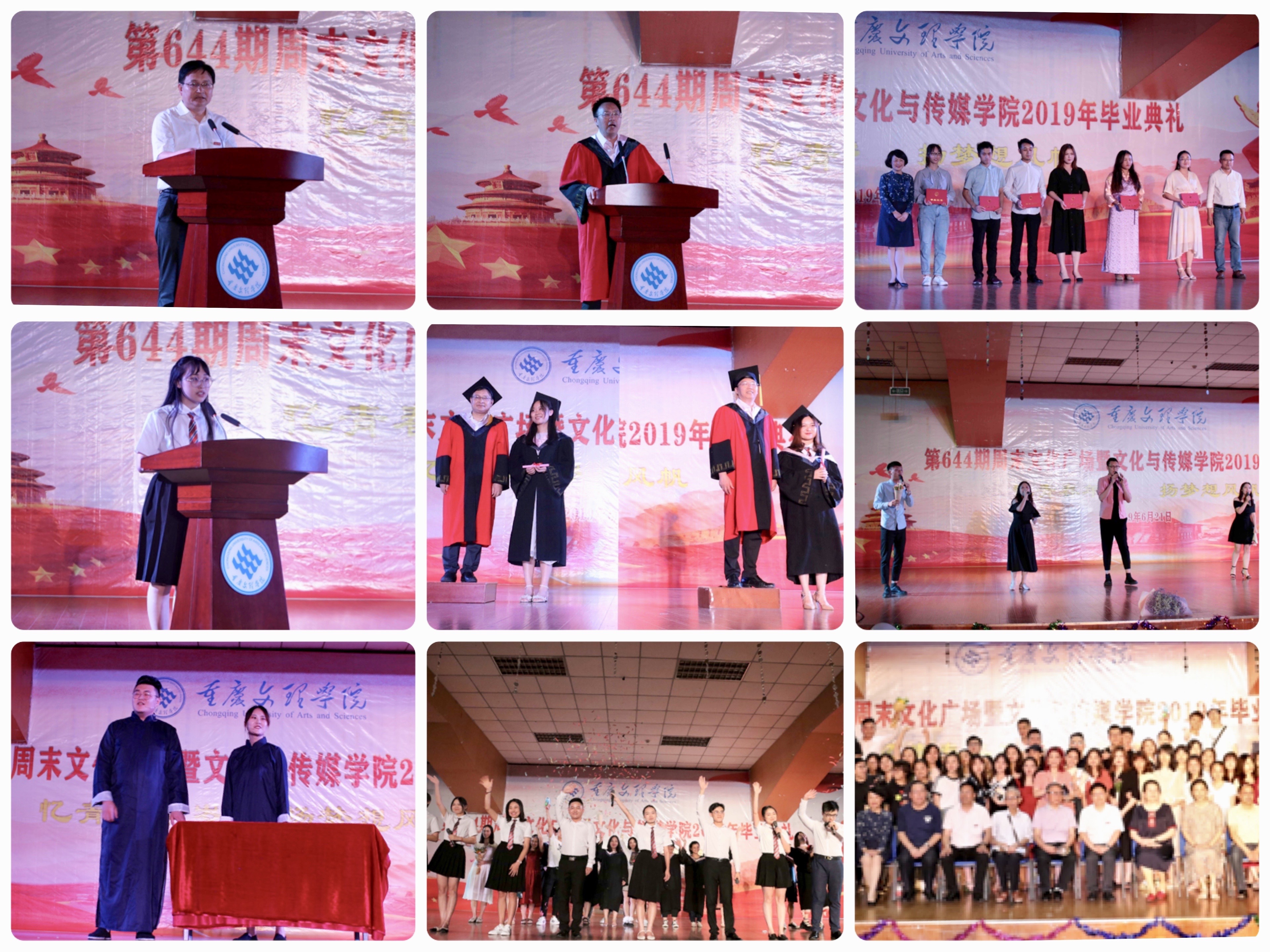 期间,师生共同观看了毕业生精心制作的毕业专题片,一张张笑脸,一句句话语,令人感动。乐器伴唱《倒数》,清澈声线,视听俱佳,毕业倒数,但友情不散;歌曲串烧《光阴的故事》引发大合唱,温情弥漫会场;古风歌舞《幻梦》,带领观众感受古韵风味,独具特色;语言文化艺术社带来相声《大什么家》,结合学院各个专业的故事,诙谐有趣;合唱《快乐崇拜》,青春洋溢,活力舞蹈点燃全场;毕业生带来朗诵《今天我们毕业了》,饱含真情实意,回忆往昔,展望未来。整个典礼在《重庆文理学院校歌》的深情演绎中缓缓落幕,师生共度了一段美好时光。典礼结束后,师生依依不舍的合影留念。