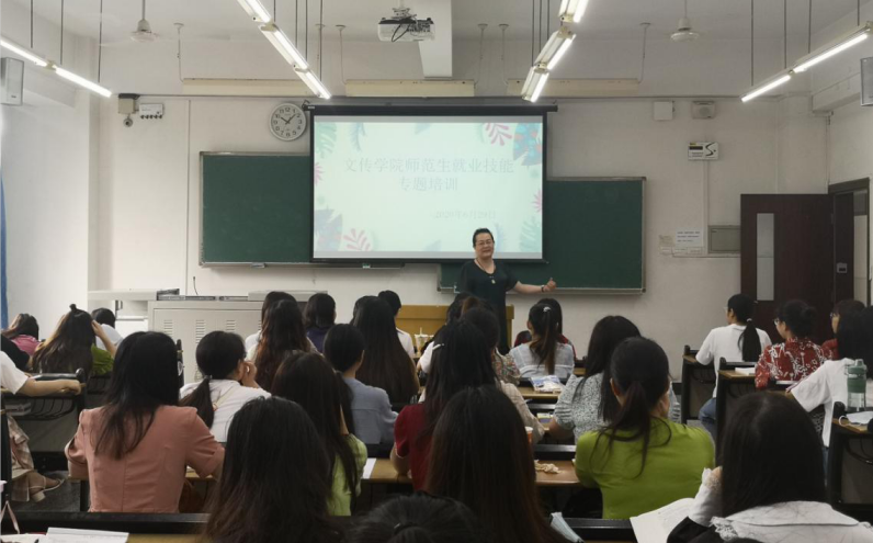 为提高师范生就业择业能力,6月29日上午,澳门网投在知津楼B207开展了师范生就业技能专题培训。活动邀请到中文系教法教研室主任李东平老师、2019级学生辅导员张雪老师做培训主讲,2017级汉语言文学(师范)专业学生80余人参加了培训活动。