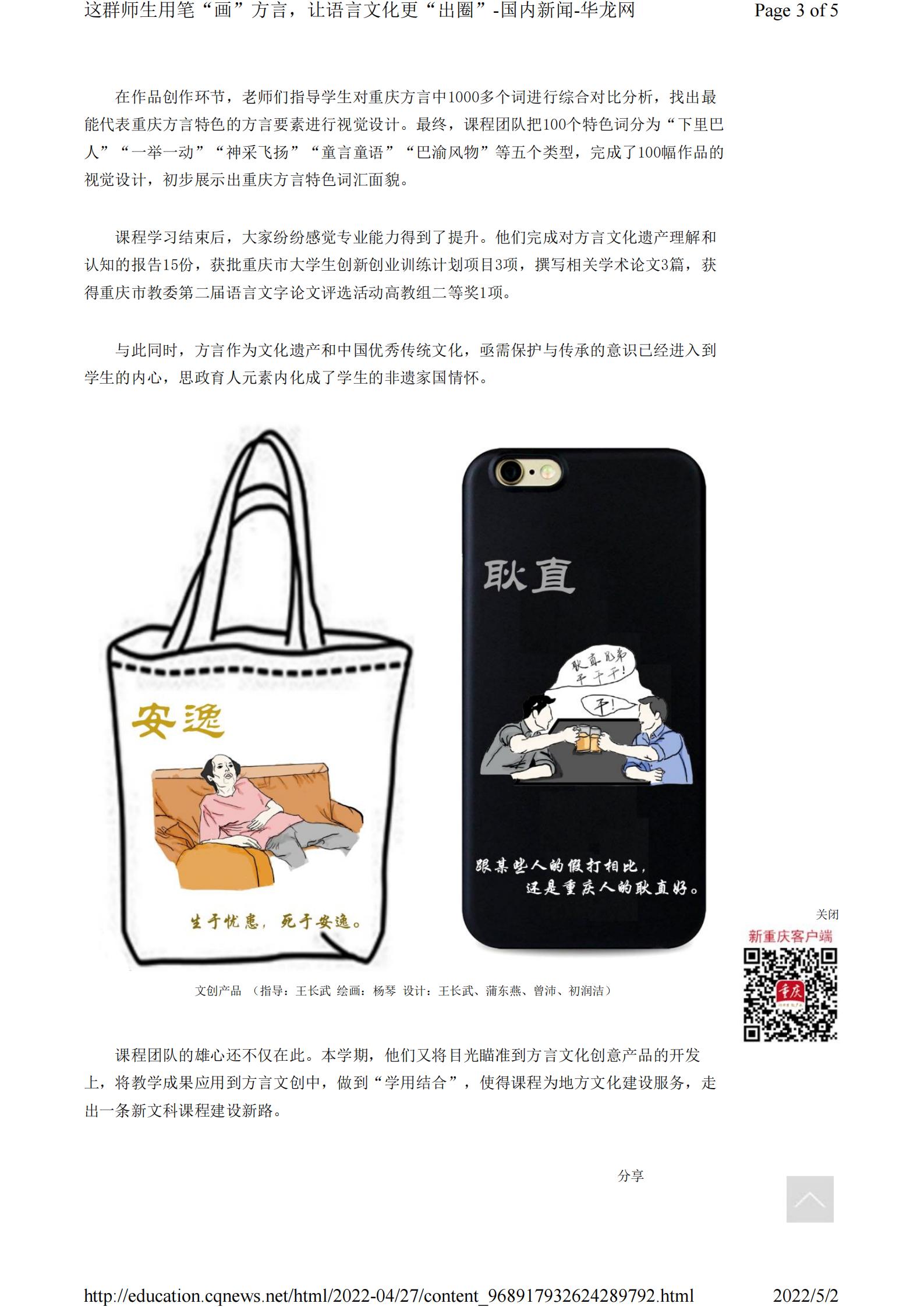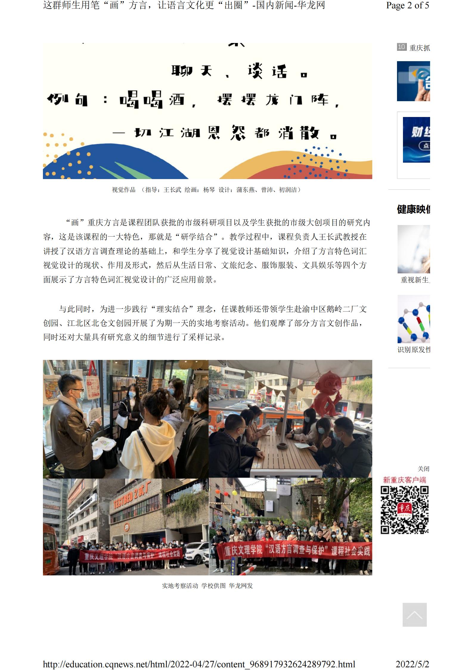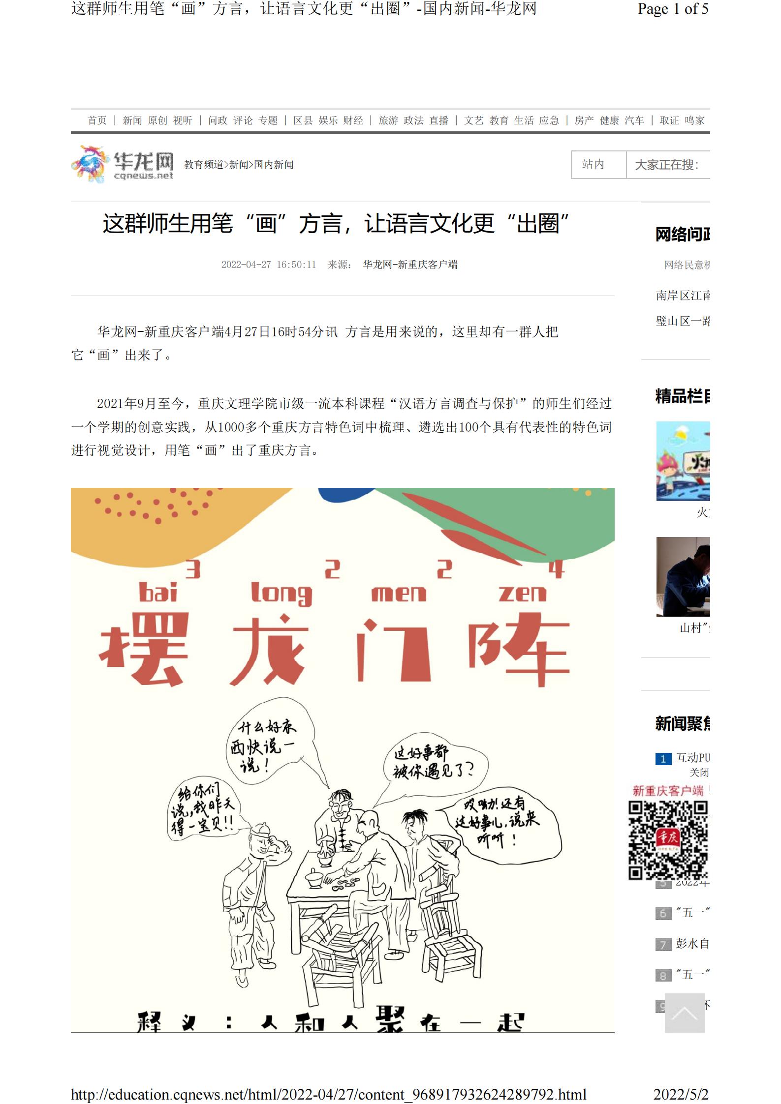 华龙网-新重庆客户端4月27日以《这群师生用笔“画”方言,让语言文化更“出圈”》为题报道澳门网投市级一流课程师生“画”方言的事迹。以下为报道原文: