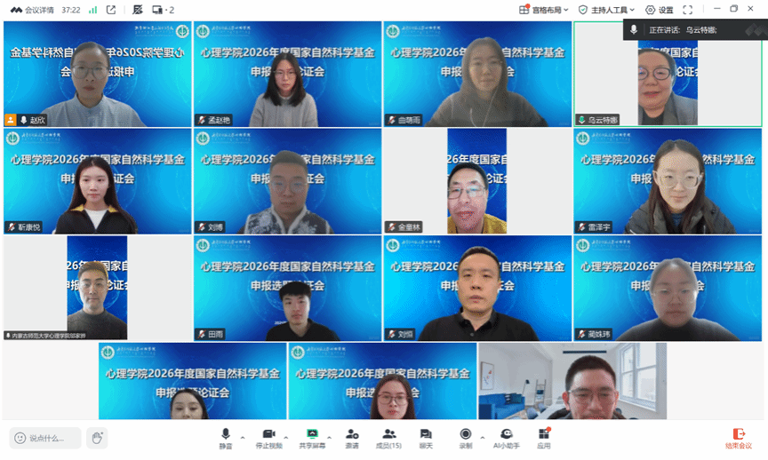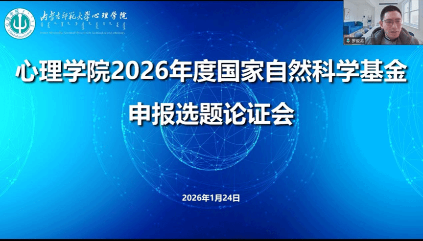为进一步落实学校关于组织开展国家自然科学基金选题优化与代码选择专项工作的部署要求,助力学院精准把控申报选题质量,切实提升项目申报质量与立项成功率,1月24日,bat365官方网站在线上召开2026年度国家自然科学基金申报选题论证会,特邀上海师范大学bat365官方网站副院长、博士生导师罗俊龙教授进行选题专项咨询与指导。论证会由院长乌云特娜主持,学院拟申报 2026 年度国家自然科学基金的教师及全体博士研究生参会。