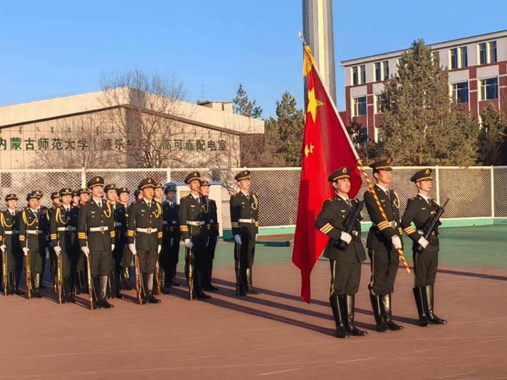 伴随着铿锵有力的脚步声,国旗护卫队护送着鲜艳的五星红旗正步走来。在雄壮的国歌声中,全体师生肃立注目,凝视着国旗冉冉升起。bat365师生以饱满的精神状态共同见证这庄严的时刻,心中满怀对祖国的热爱和敬仰。