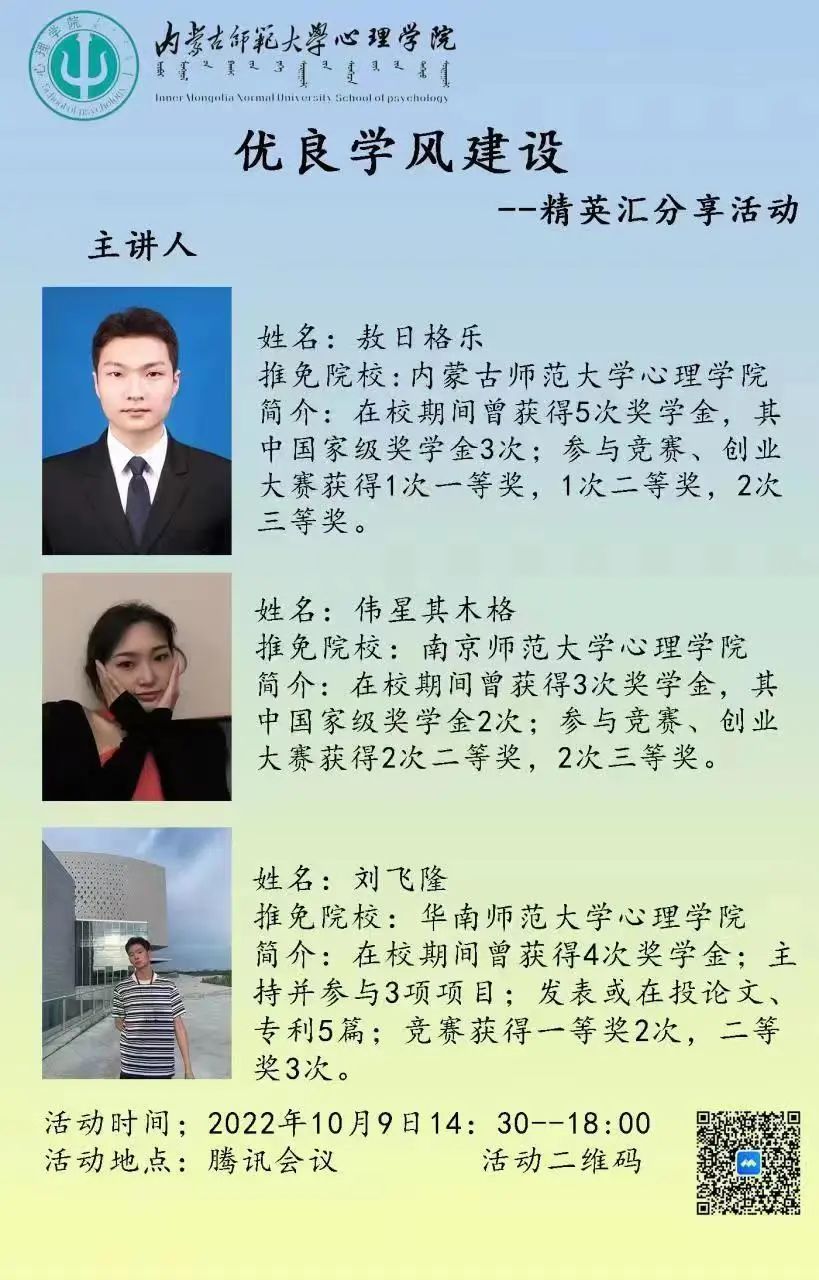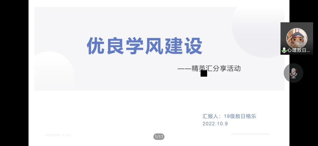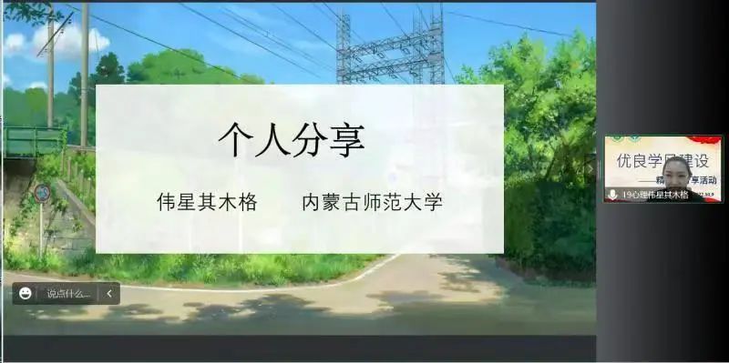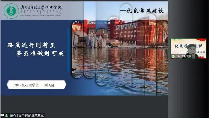 勤学如春起之苗,不见其增,日有所长:辍学如磨刀之石,不见其损,日有所亏。没有知识的滋养,心灵易贫瘠,灵魂易空虚。对待学习,要博学之,审问之,慎思之,明辨之,笃行之。为进一步加强bat365优良学风建设,bat365官方网站于10月9日下午三点在线上举办优良学风建设-精英汇分享活动。本次会议由团总支书记刘敏主持,敖日格乐、刘飞隆、伟星其木格进行分享。