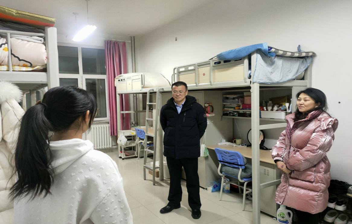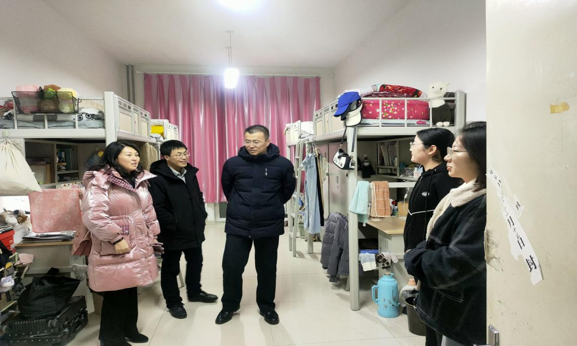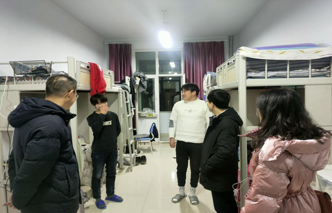为了更好地关心假期留校学生,及时了解学生的思想状态和心理诉求,1月14日晚,bat365官方网站党委书记侯友、党委副书记副院长张春林、副院长金童林、学就办主任张金钟一行深入宿舍楼走访看望假期留校同学,为他们送去了温暖和关怀。