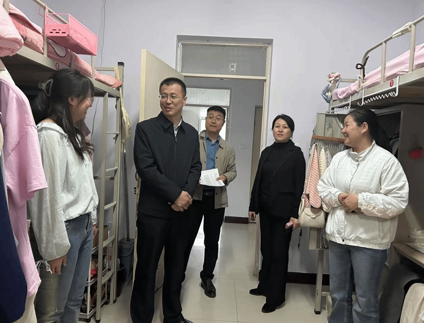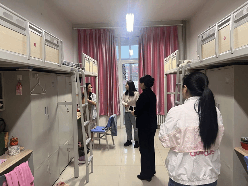 走访过程中,老师们与学生亲切交谈,询问了在校期间的学习和生活情况,鼓励同学们有困难和需求及时向学院反馈,学院会尽力解决。院领导逐一了解特殊学生的身心健康情况,提醒同学们要注意安全、加强体育锻炼,提高免疫力。鼓励同学们学好专业知识并广泛涉猎学科相关知识,夯实专业基础,为将来择业就业做好充分准备。还特别提醒同学们要自觉养成集体生活的卫生习惯,共同维护宿舍的生活氛围。
