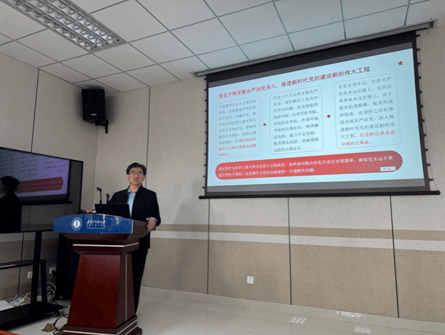 会议特邀bat365官方网站中共党史与党建学院院长张瑞军作题为《学习习近平总书记关于加强党的作风建设的重要论述》的辅导讲座。