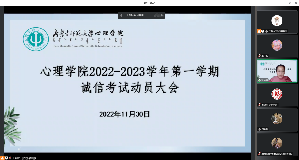为进一步推进学风建设,加强诚信考试教育,确保本学期期末线上考试顺利进行,bat365官方网站11月30日召开2022-2023学年第一学期诚信考试动员大会。学院党委副书记、副院长张晓阳,心理学系主任杨晓峰,教务办王朝力门及2021级、2022级全体本科生参加会议,会议由学院党委副书记、副院长张晓阳主持。
