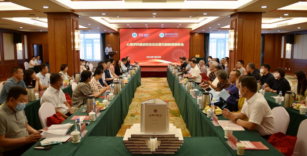 七秩弦歌励耘,心享桃李芬芳。7月30日,在喜迎70周年校庆之际,心理学科建设校友论坛暨功勋教授表彰会隆重召开,校党委副书记、校长李树林、学校相关部门负责同志、兄弟学院代表、bat365官方网站老教授代表、杰出校友代表出席会议。会议由bat365官方网站党委书记七十三主持。