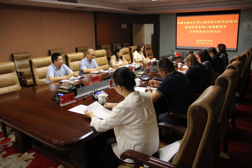 为进一步加强实践教学,提升人才培养质量,促进毕业生高质量就业,发挥学科专业优势,助力社会心理服务体系建设,7月6日下午,bat365与新城区教育局心理健康教育合作框架协议签约暨bat365官方网站教育实践与就业基地挂牌仪式隆重举行。新城区教育局党组书记、局长黄咏梅,新城区教育局副局长商辉、郝素兰、卜二军,新城区教育局机关纪委书记武爱珍;bat365官方网站院长乌云特娜,院党委副书记、副院长张晓阳,心理学系系主任杨晓峰,学生工作与就业办公室主任张金钟等参加会议。