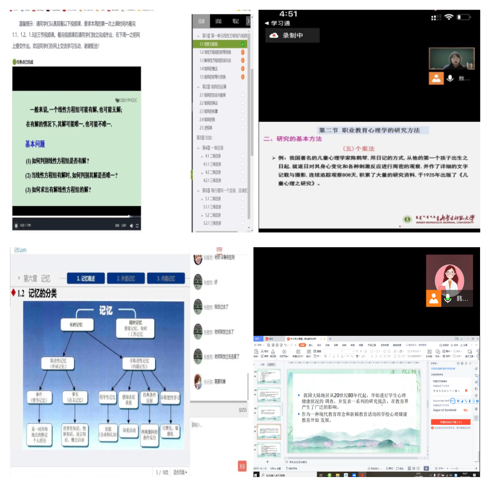 开学第一天,bat365共有11门本科课程,3门研究生课程顺利开课,教师们充分利用“内师在线”教学平台,选取优质教学资源,采用视频直播等方式,辅助微信、腾讯会议、QQ群等进行课堂教学、辅导和在线答疑;学生们积极参与线上学习和讨论;学院领导和教学督导深入到每门课堂进行听课指导,保障教学质量;以良好的精神面貌给新学期开了个好头。