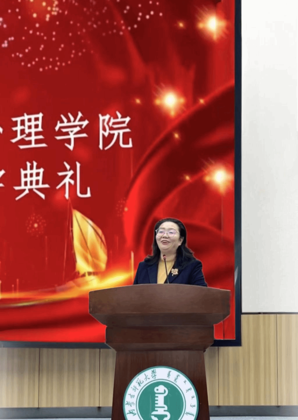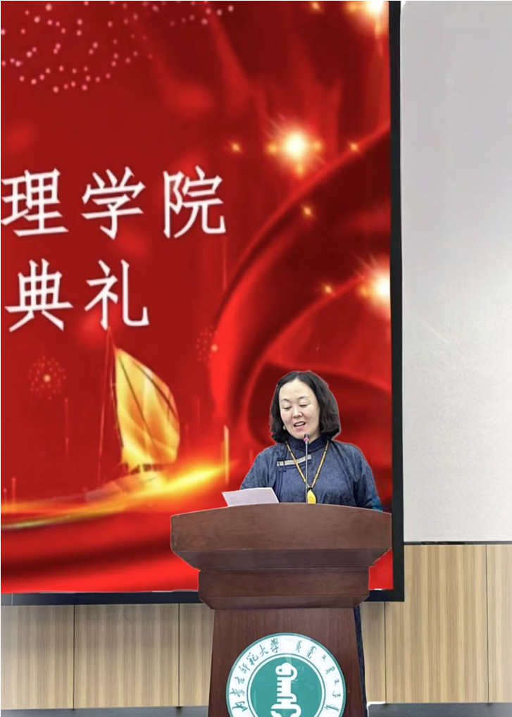 教师代表格根图雅以幽默风趣的方式围绕用心感受心理学的文化传承分享了自己对于学习和生活的见解,希望同学们用心感受百年心理学的文脉传承、汲取激励心理学人前行的力量,彰显内师人的家国情怀。她鼓励大家要独立思考,闯学术之路;自信专注,辟科研新径;笃行致远,担时代重任。